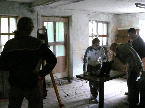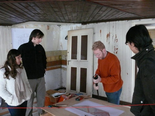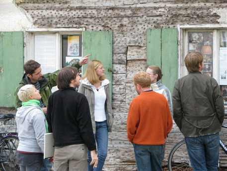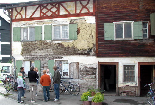 Studenten forschen im Möggenried-HausEine Gruppe von zwölf Studenten unter der Leitung von Frau Dipl. Ing. Elke Nagel M. A. von der Technischen Universität München besuchte vom 08.07. bis 12.07.2009 das Möggenried-Haus, um hier Allgäuer Bau-Geschichte zu erforschen. Die angehenden Wissenschaftler beschäftigten sich im Rahmen eines Sommerseminars für mehrere Tage mit der Konstruktion und den Besonderheiten des Hauses. Die international zusammengesetzte Studentengruppe des Fachs »Building Achaeology« (Gebäudearchäologie) mit Teilnehmern aus aller Welt wurde in englischer Sprache unterrichtet und vermaß zu Übungszwecken wichtige Gebäudeteile, untersuchte Konstruktionselemente und dokumentierte die Ergebnisse zeichnerisch. Abschließend verfasste jeder Student eine Seminararbeit zu seiner Sonthofener Exkursion, unterbreitete Vorschläge zur Restaurierung und zum Umbau der alten Nagelschmiede. Dazu werden auch Ideen entwickelt, wie das restaurierte Haus genutzt werden könnte. So entstanden weitere interessante Varianten für eine Verwendung des historischen Hauses. Der Architekt Claudio Ritter begleitete das Seminar und referierte vor den Studenten über seine Erkenntnisse. Ein Teil der Fotos wurde freudlicherweise von Herrn Gutsmiedl von der Redaktion des Kreisboten Sonthofen, zur Verfügung gestellt.
