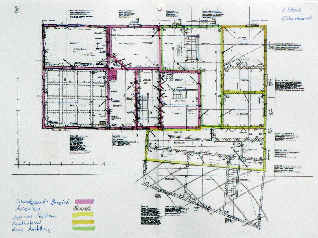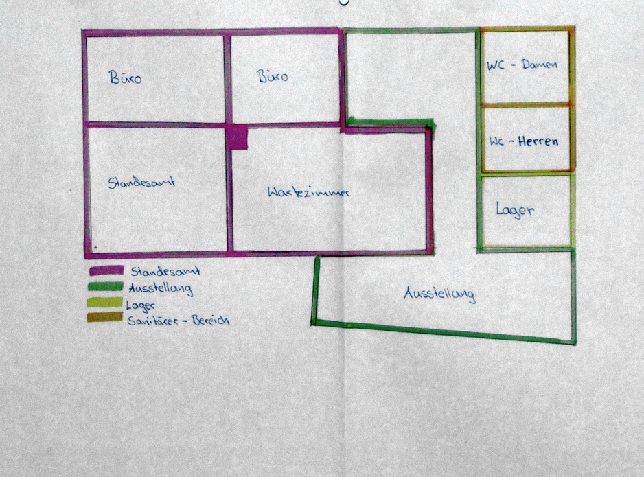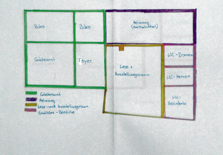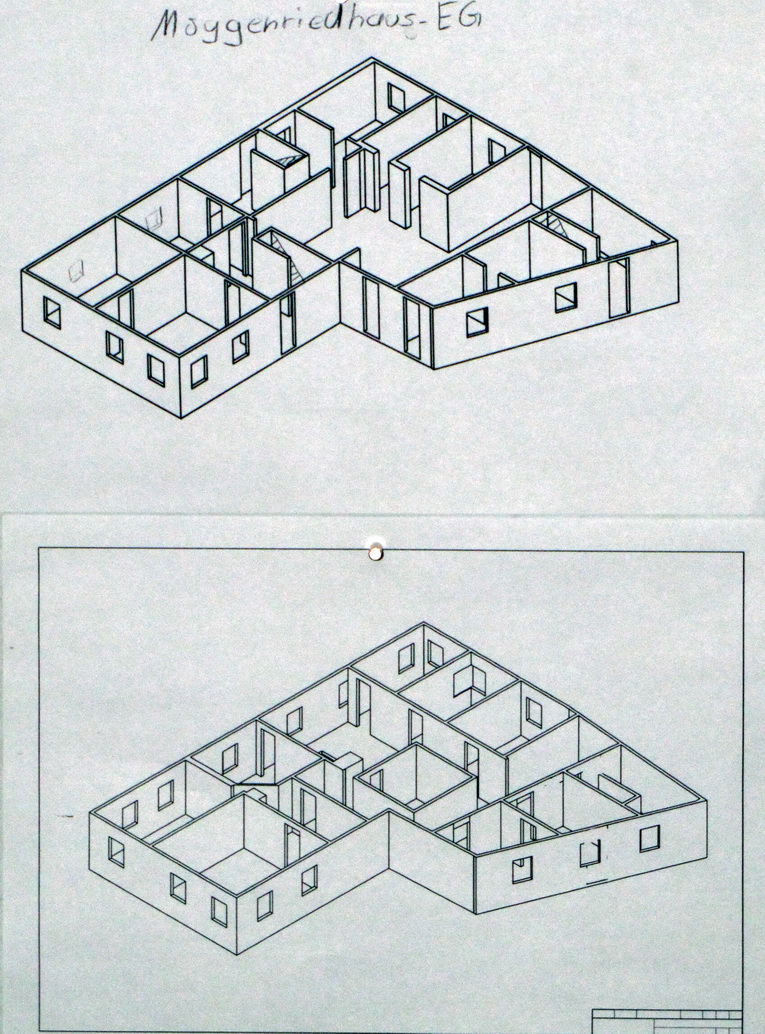 Grafische Auszüge aus der ProjektarbeitDie Schüler der Klasse 10aM von der Mittelschule hatten für Ihre Projektarbeit im Team das Haus eigenständig untersucht, fotografiert und nachgemessen, um hieraus Nutzungsvorschläge zu erarbeiten. Nach Fertigstellung präsentierte die Gruppe ihr Forschungsprojekt anhand der Grafiken ihren Mitschülern. Sie zeigen anschaulich, wie eingehend die Jungen sich mit dem Haus beschäftigten und wie sie sich die Nutzung wünschen. |