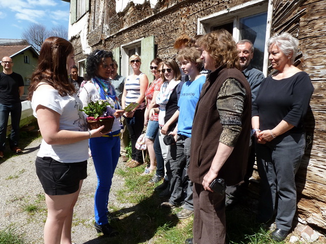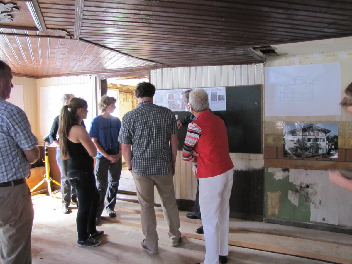 Schüler der Mittelschulen in Sonthofen, Kempten und Rosenheim haben sich im Vorjahr für ein Denkmal-Projekt zusammengeschlossen, bei dem jede Schule ein historisches Gebäude in ihrer Region erforscht und präsentiert. Die Sonthofener Mittelschule nahm sich das Möggenried-Haus und dessen Verbindung zum namhaften Sonthofener Kunstmaler Schraudolph, dessen Geburtshaus das Möggenried-Haus war, zum Thema. Die Ergebnisse ihrer Forschungen hatten die Schüler im Frühjahr eine Woche lang in der Sparkasse Sonthofen ausgestellt. Im April besichtigte die Partner-Schule aus Rosenheim das Möggenried-Haus. Im April informierte sich Rosenheimer Klasse über das Projekt ihrer sonthofener Partner. Führung durch das Haus übernahm Frau Beate Möggenried-Lichtenheld, die Enkelin des früheren Eigentümers Friedrich und Herr Ernst Deissinger.