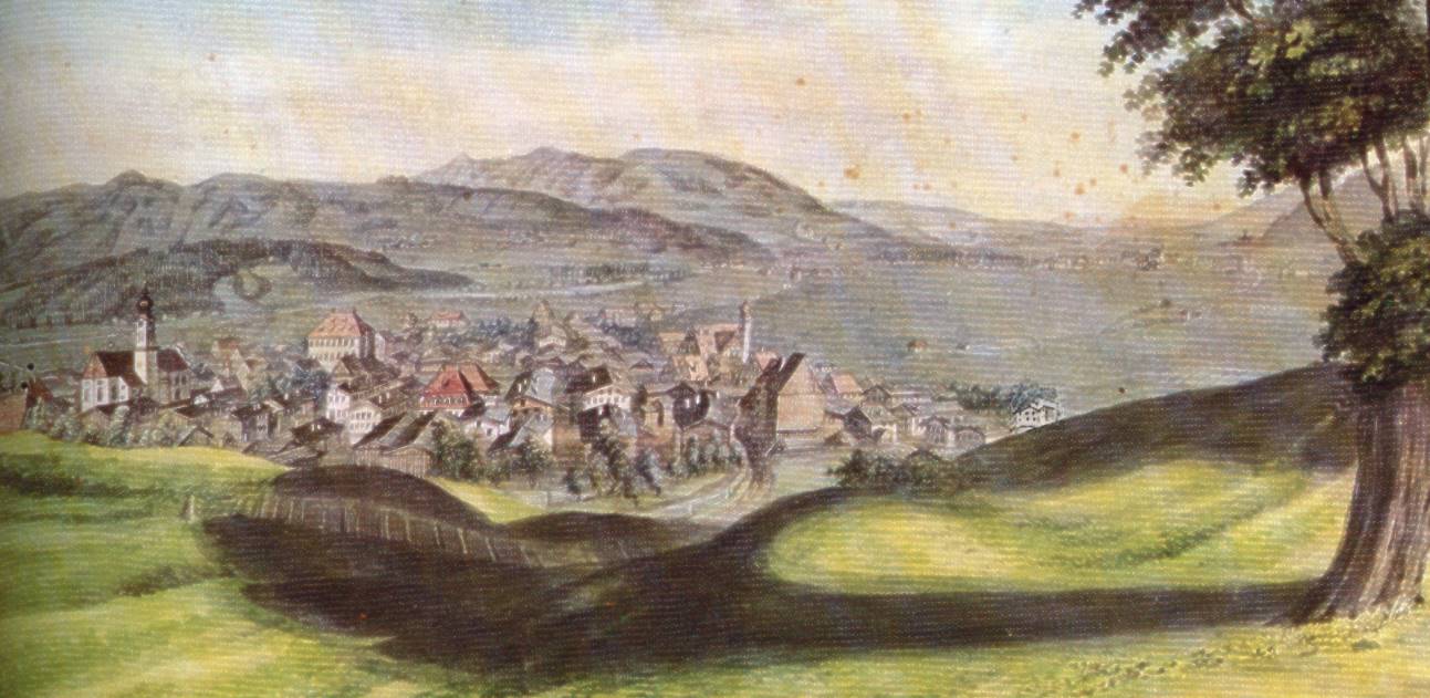 Auf diesem alten Gemälde aus dem Jahre 1831von Sebastian Glätzle ist die alte Nagelschmiede abgebildet. Wenn Sie glauben, das richtige Haus gefunden zu haben, klicken sie doch einfach mal darauf...