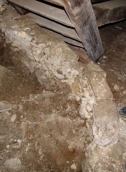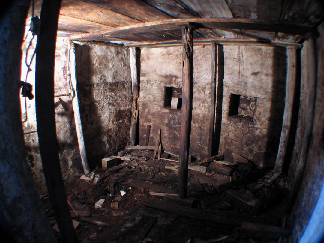 ![]() Versteckt unter der Werkstatt bzw. dem ehemaligen Stall liegt ein weiterer, obskurer Kellerraum dessen urprüngliche Bedeutung Rätsel aufgibt. Er besitzt einen Lichtschacht, der jedoch ins Gebäudeinnere führt. In den Wänden sind eingemauerte Vertiefungen.